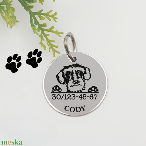 Szálkásszőrű tacskó kutyabiléta saját kutyád nevével, telefonszámmal