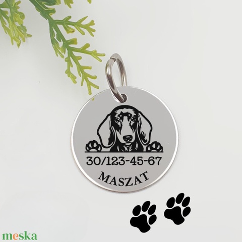 Tacskó kutyabiléta saját kutyád nevével, telefonszámmal