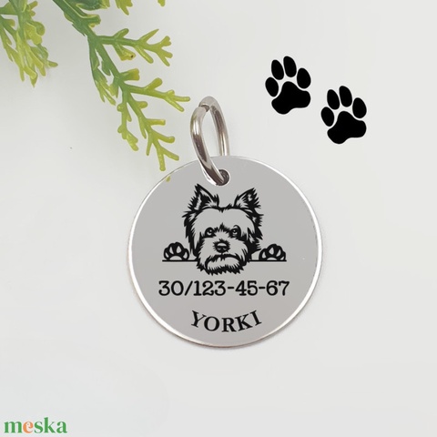 Yorkshire terrier kutyabiléta saját kutyád nevével, telefonszámmal