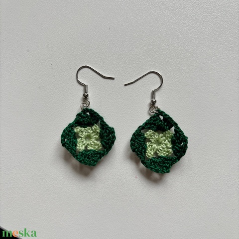 Horgolt fülbevaló, kétféle zöld színű fonalból
