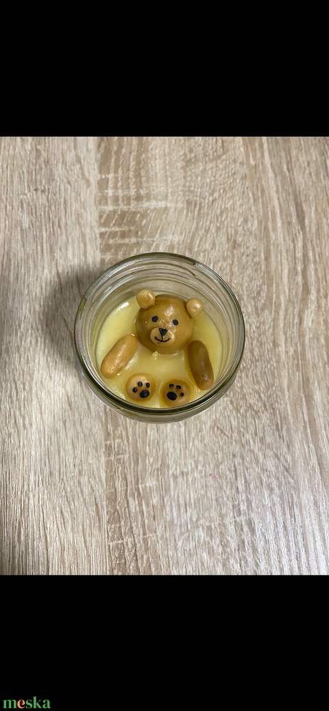 Kézműves, karámellás kávé illatú gyertya aranyos maci figurával🧸