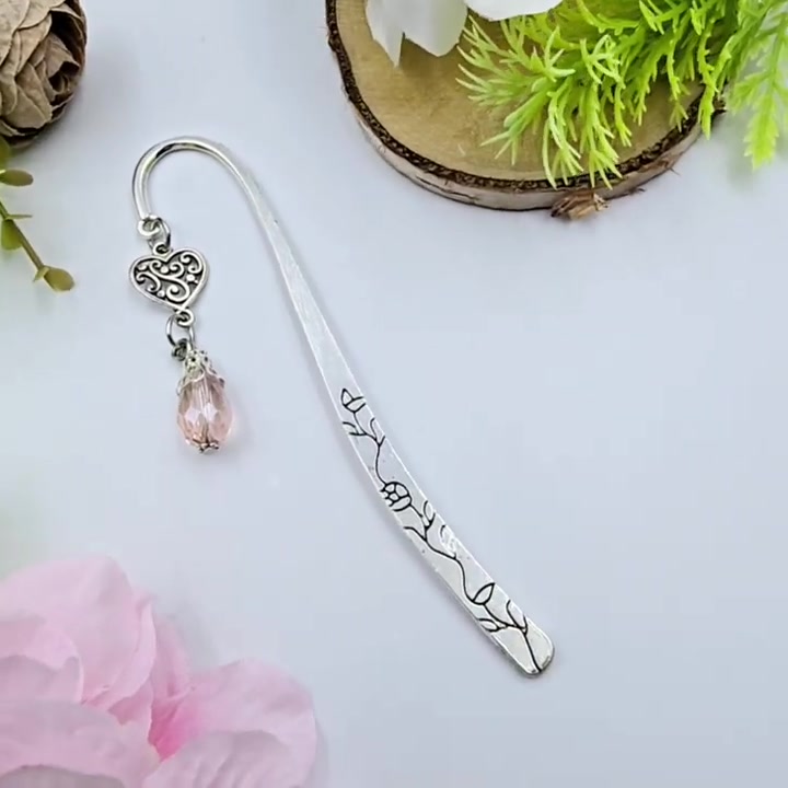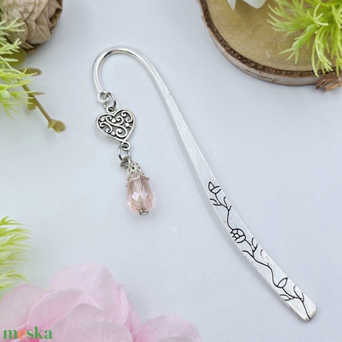 "Yara" - könyvjelző rózsaszín üveggyönggyel, szív charmmal