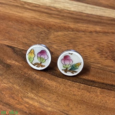 Mentett porcelán darabok - nemesacél fülbevaló, Viktória virágos