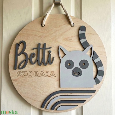 Tökéletes választás névtábla ajtóra, gyerekszoba fal dekorációként vagy polcra helyezve – természetes, időtálló falidísz fából, amely hosszú éveken át díszíti a teret.
