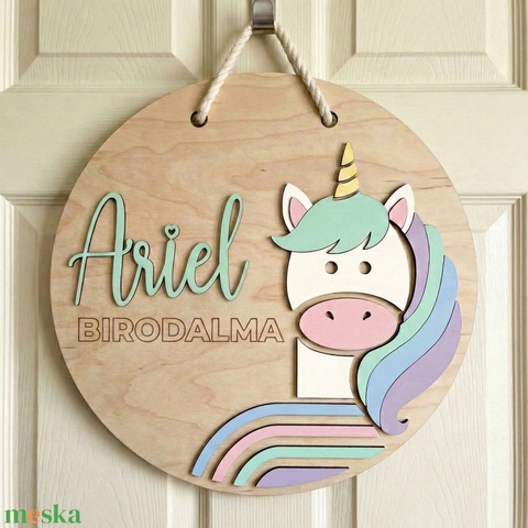 Pasztell névtábla a gyerekszoba ajtajára, vagy falára