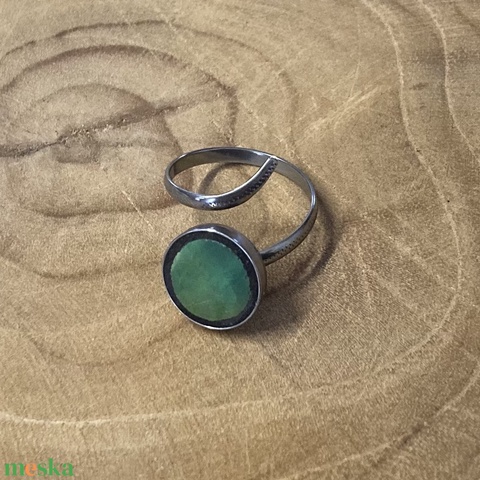 Eozinos mentett porcelán darabok - kígyós nemesacél gyűrű - eozin mázas, állítható