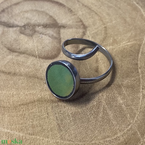 Eozinos mentett porcelán darabok - kígyós nemesacél gyűrű - eozin mázas, állítható