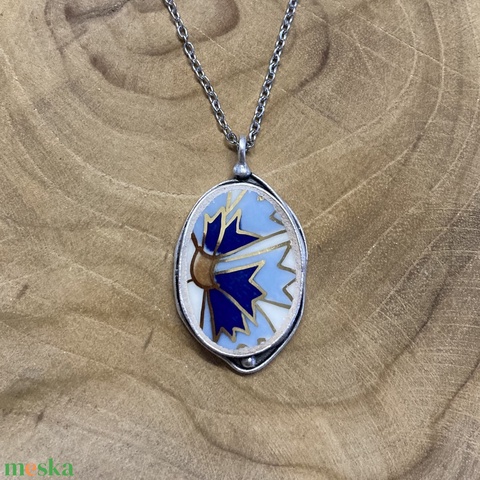 Mentett porcelán darabok - búzavirág mintás nyaklánc