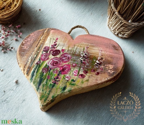 Valentin-napi szív virágokkal - Rusztikus Fatábla, Ajándék ötlet - Egyedi Falidísz, Szív, Valentin-nap