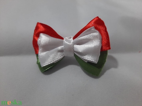 Nemzeti színű kitűző-masni formájú