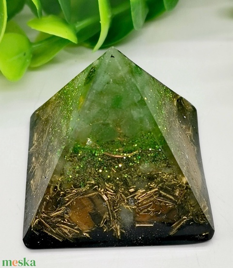 Nyugalom, bőség piramisa. Tartalmaz, aventurint, Citrint, Tigrisszemet rézforgácsot és az elmaradhatatlan rézspirált.Valamint Shungitport.