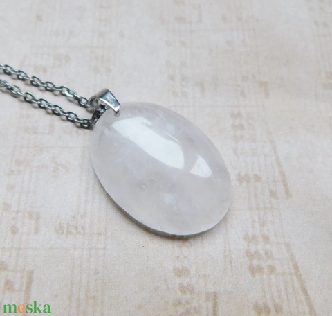 Orvosi acél szerelékre akasztottam ezt a különlegesen szép hegyikristály medált.