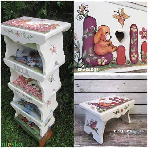 “Csodaszép sámlit kaptam, nagy sikere volt a keresztelőn. Köszönöm a kedves sorokat és az ajándékokat is. Szeretettel ajánlom.”