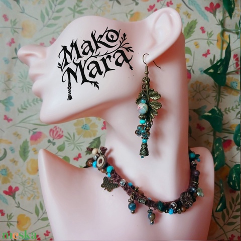 zsinór, gyöngy, bronzszínű fém juju, fa, kerámia