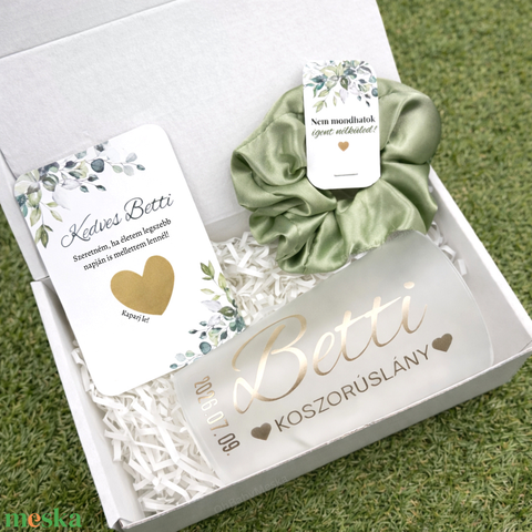 Koszorúslány felkérő ajándék doboz, Esküvői pezsgős pohár, Tanú felkérő szett, Koszorúslány ajándék, Egyedi tanú felkérő
