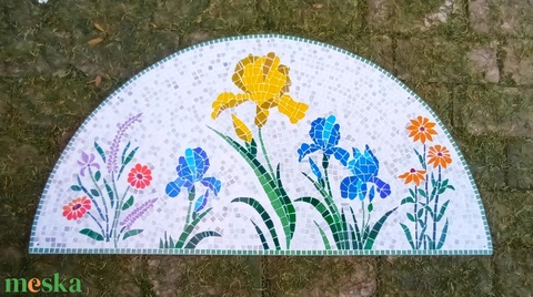 REKREDENC - Virágos mozaik falikép – kézműves, kültéri, 100 cm