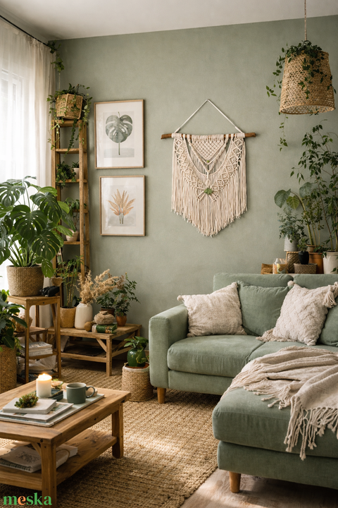 Makramé falidísz (50cm x 70 cm) kerámiadísszel