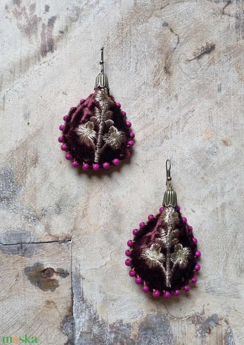 Bíborka- hímzett fülbevaló padlizsánlila/ bordó/arany