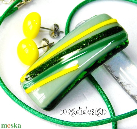 Csillámos kikelet üvegékszer szett nyaklánc, stiftes fülbevaló