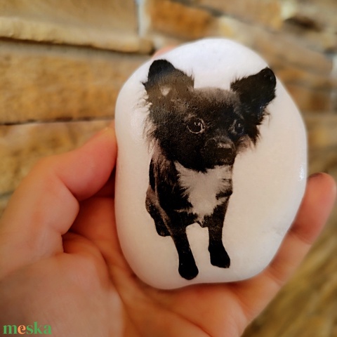 Egyedi,megrendelésre készült díszkő Rőzsike kutyussal