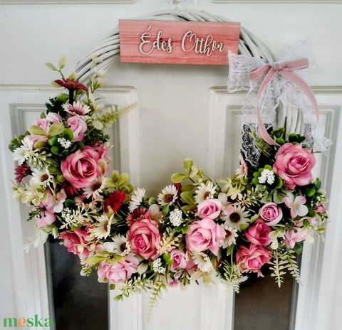 Rózsaszín virágos ajtódísz