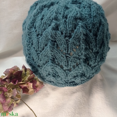 Olaj-zöld, akril, áttört mintával kötött sapka