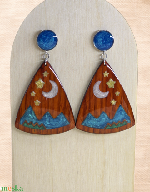 Csillagos éjszaka – rózsafa statement fülbevaló