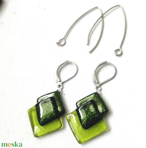 ORVOSI FÉM ! Zöld fények trendi fülbevaló , ajándék névnapra, születésnapra.