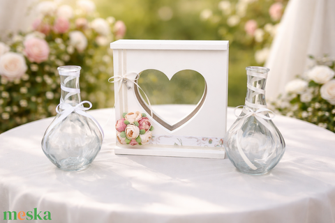 - Anyaga: selyemvirág, szatén, fa, üveg