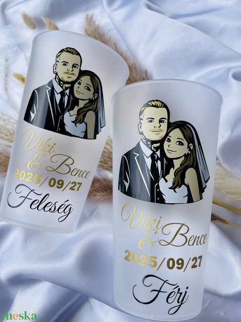 Saját fotóból animációval készülő esküvői ültető és köszönő ajándék pohár