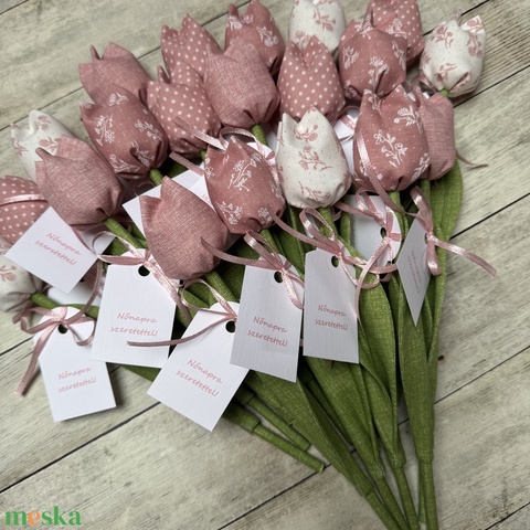 Nőnapi textil tulipánok / szett: 20 db/ ingyen ajándékkísérővel