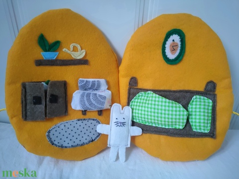 Nyuszi tojás házikóban - Húsvéti textil könyv gyerekeknek - Húsvéti csendeskönyv - Nyuszis játszókönyv