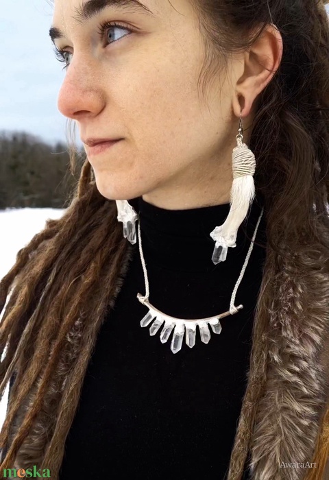 Hóvilág ~ Jégkristály talizmán csonttal, valódi szőrrel