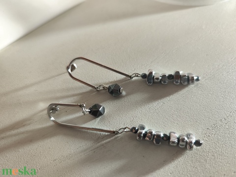 Stílusos hematit fülbevaló íves nemesacél pálcával – Földelő fekete varázs!
