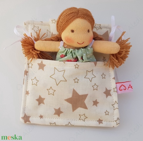 Apró Waldorf baba hálózsákkal - zöld ruhás