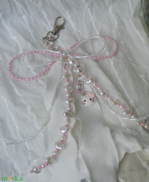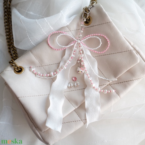 Táska charm vagy kulcstartó rózsaszín és fehér színben