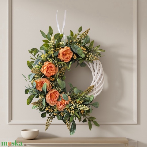 Virágos elegáns koszorú – virágos ajtódekoráció, romantikus színvilág - nagyméretű