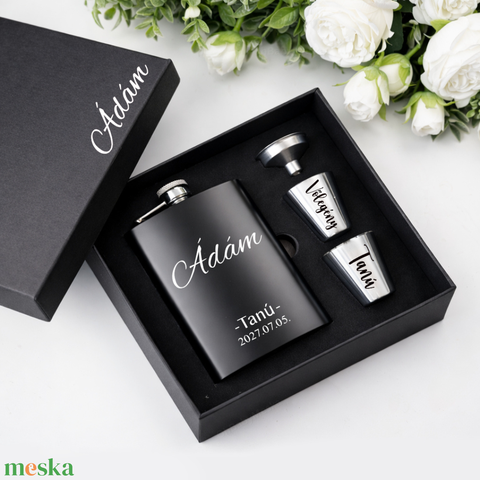 Tanú felkérő szett, Tanú felkérő, Örömapa szett, Esküvői feles pohár, Férfi Tanú ajándék, Lapos üveg,Egyedi tanú felkérő