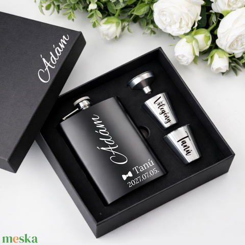 Tanú felkérő szett, Tanú felkérő, Esküvői feles pohár, Férfi Tanú ajándék, Lapos üveg