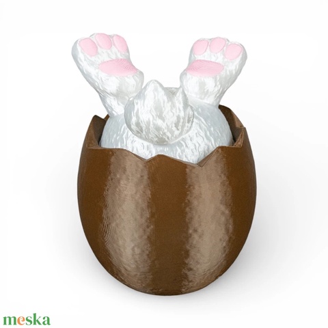 Szín: Csokoládébarna tojás, hófehér nyuszi rózsaszín részletekkel
