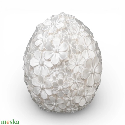 Részletgazdag textúra: A tojás teljes felületét beborító, különböző méretű százszorszépek plasztikus és látványos megjelenést kölcsönöznek.