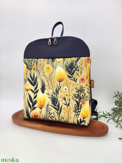 Útravaló hátizsák S méret kék sárga mezei virágok minta