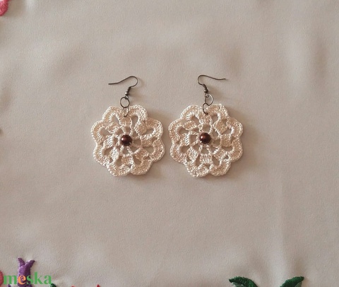 - Anyaga: kordonet selyem fonal, gyöngy, szerelőkarika, fülbevaló alap, textil keményítő