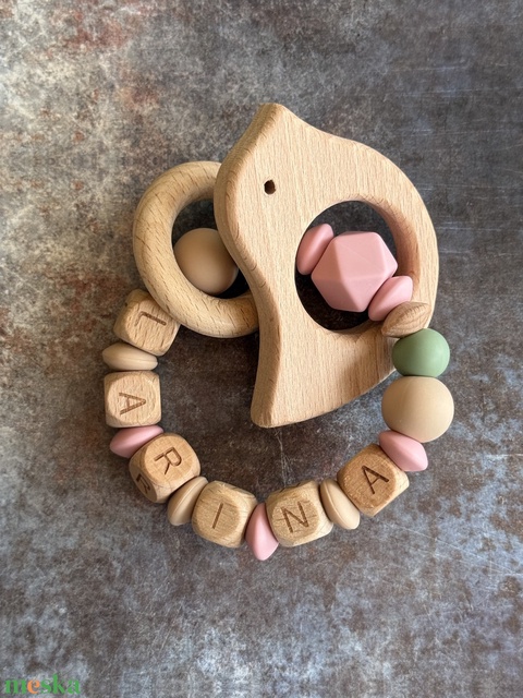 Csörgő rágóka #28 világos mályva - zsálya - karamell