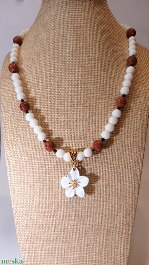 Jázmin ásványgyöngyös nyakék ~ virág medállal