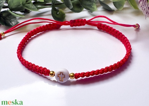 Fonott kereszt karkötő – piros színben, állítható méret