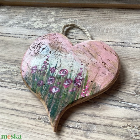 Vadvirágos - Pink - Rusztikus Fatábla, Ajándék ötlet - Egyedi Falidísz, Szív, Valentin-nap