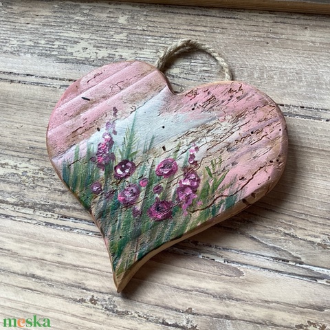Mezei virágos - Pink - Rusztikus Fatábla, Ajándék ötlet - Egyedi Falidísz, Szív, Valentin-nap