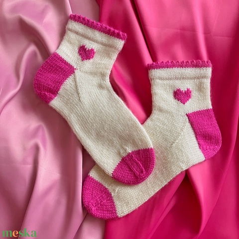 Kézzel kötött gyapjú zokni „ szívek” Méret: 38-39