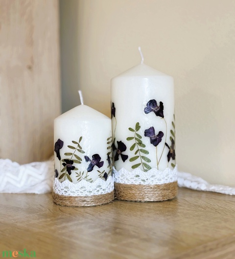 - Anyaga: klasszikus viaszgyertya, szárazvirág díszítés, bélelt díszdoboz, díszítő szalag